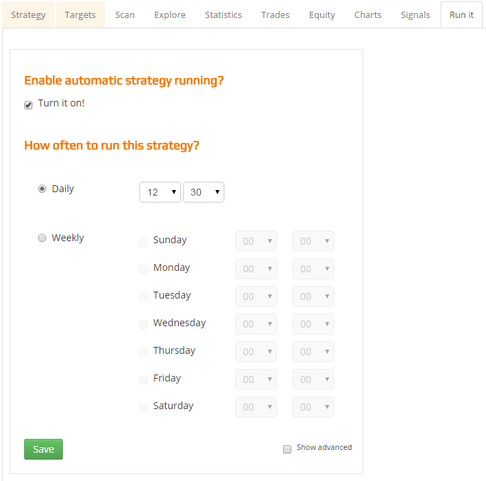 Intraday strategies need an additional setup which defines time and frequency for strategy run.