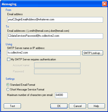 - Where it asks for your SMTP Server name or IP address, enter ts.collective2.com