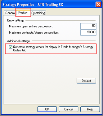 - Make sure Generate strategy orders for display in the Trade Manager's Strategy Orders tab has a check-mark beside it. (Two screenshots are shown below, one for TradeStation 8, and the other for TradeStation 9.)