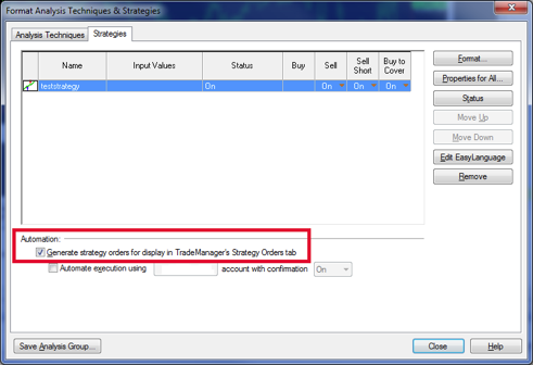 Make sure TradeStation knows to generate "Strategy Orders"