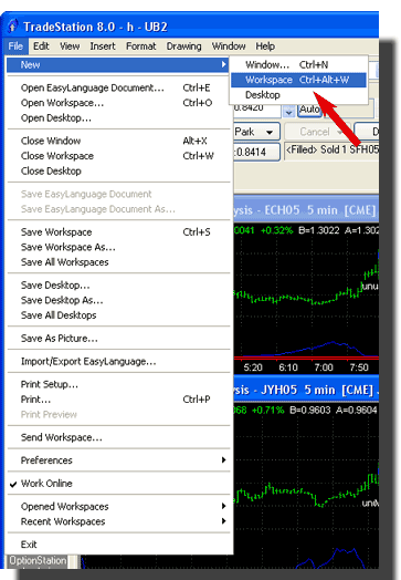 On the File menu in your TradeStation program, select New then Workspace.